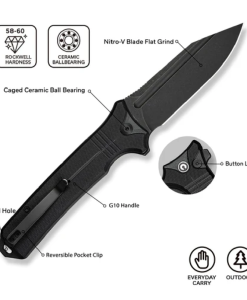 Civivi Neurohaptic Flipper & Button Lock Knife Black G10 Handle C23080-1