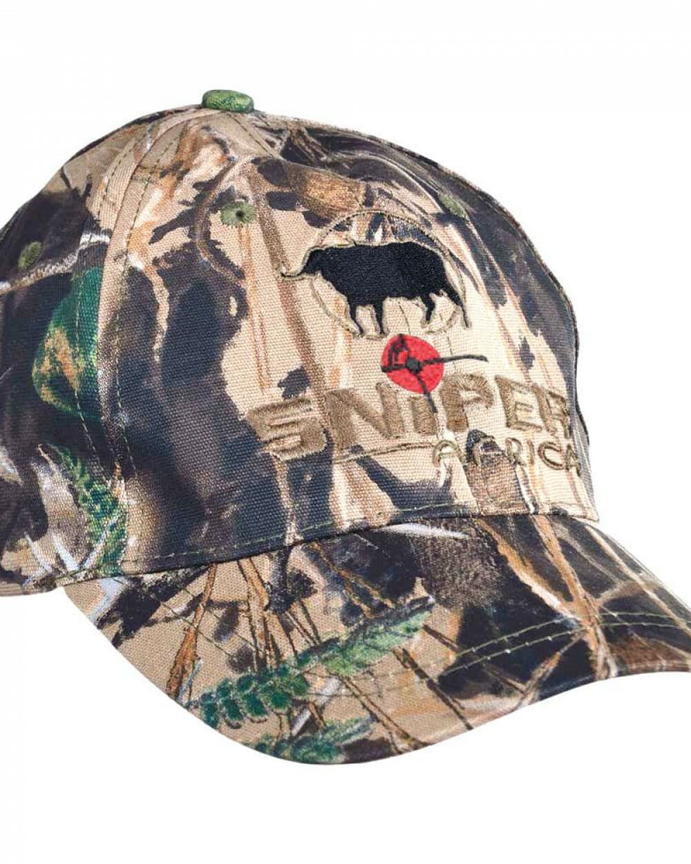 6-Panel peak cap with an adjustable velcro strap, for comfy fit and protection from the African sun Sniper logo cap with buffalo detail.