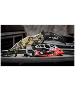 The FOX 479 TK Karambit Trainer is designed for safe and effective training while maintaining the feel of a live karambit. Built with a 420C stainless steel blade and a durable red G10 handle, this folding trainer is perfect for honing your skills without the risk of injury. Featuring the patented Emerson Wave, it allows for quick deployment from the pocket, making it an excellent choice for martial artists and self-defense training.