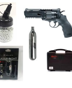 Includes: BB pistol, CO2 cartridges, BBs, and accessories