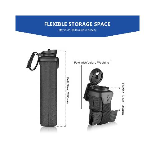 Airsoft BB Nylon Pouch holds a maximum 3000 Rounds. It can be folded to suit different capacities, which prevent shaking or clapping.