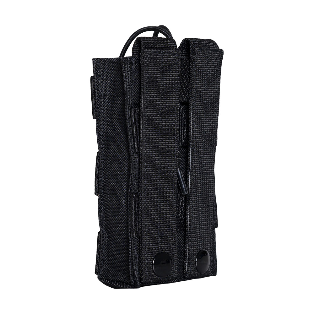 - Rear panel has two MOLLE straps with metal button snaps to secure onto PALS/MOLLE webbing gear.
