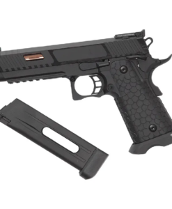 This CO₂-powered pistol delivers a solid 1.44 joules of muzzle energy and features blowback action for realistic operation. Designed with performance in mind, it includes a full metal accessory rail and full metal slide, unique serial number, and a refined exterior that mirrors its competition-ready firearm counterpart.
