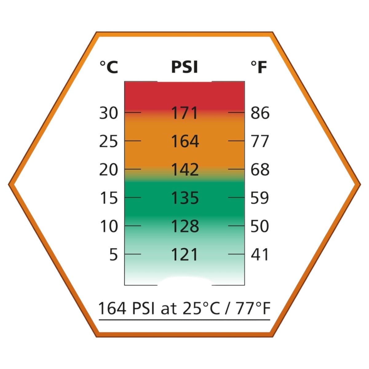 - Pressure: 164 PSI (measured at 25°C / 77°F)