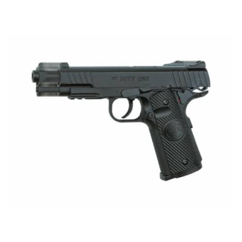Built for performance and aesthetics, the Duty One includes a metal slide with engraved STI® logos, a high-rise beavertail grip for excellent handling, and a front weaver/picatinny rail for mounting tactical accessories. The drop-out magazine houses both BBs and the 12g CO2 capsule, which fits neatly in the grip via ASG’s easy-load system.