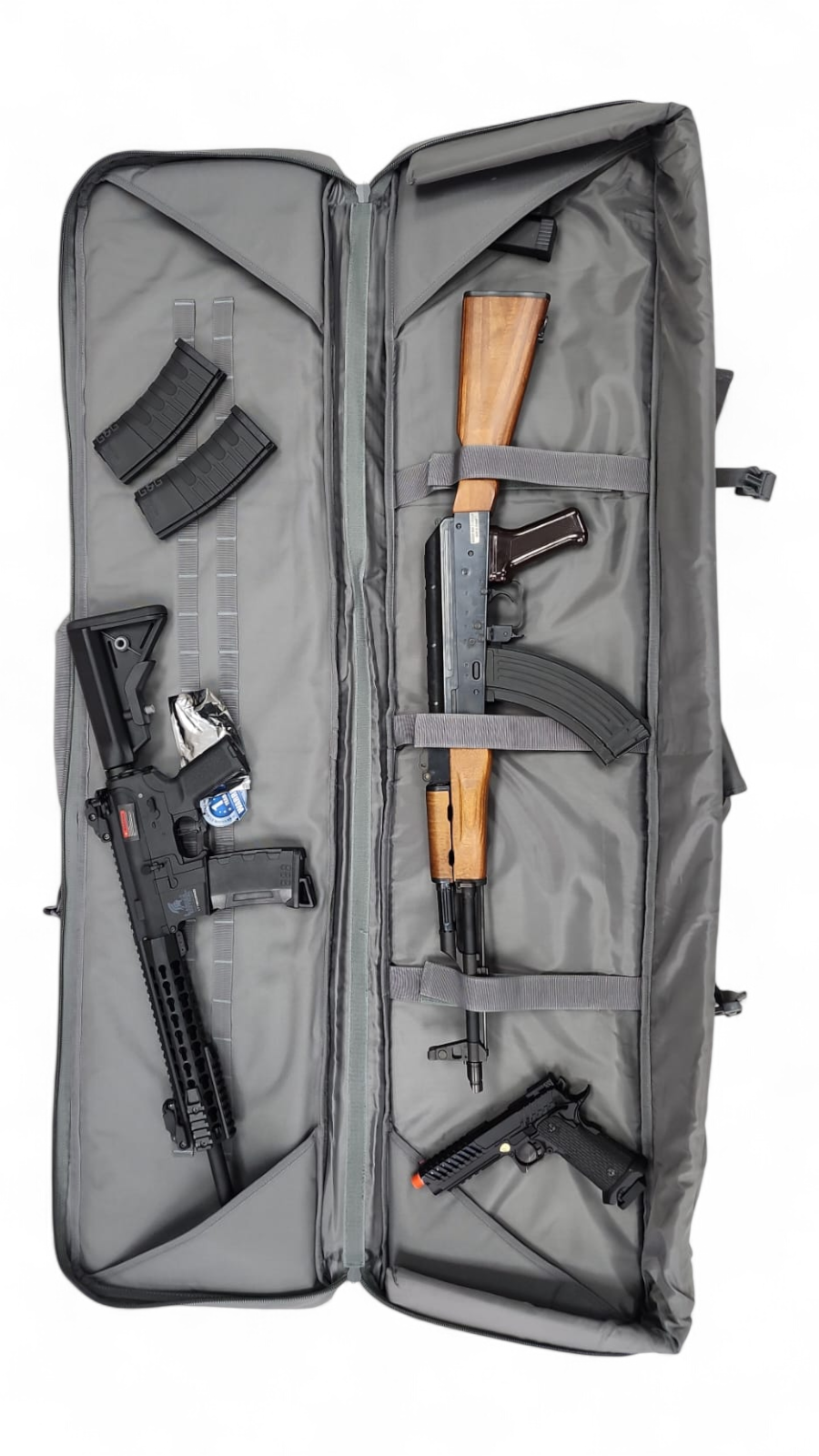 Designed for comfort and ease of transport, the integrated backpack straps allow for hands-free carrying, reducing fatigue during extended movement. Additional storage compartments provide space for accessories, magazines, or essential gear, keeping everything organized and easily accessible.