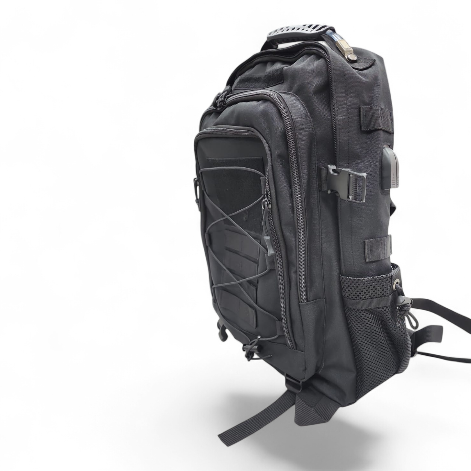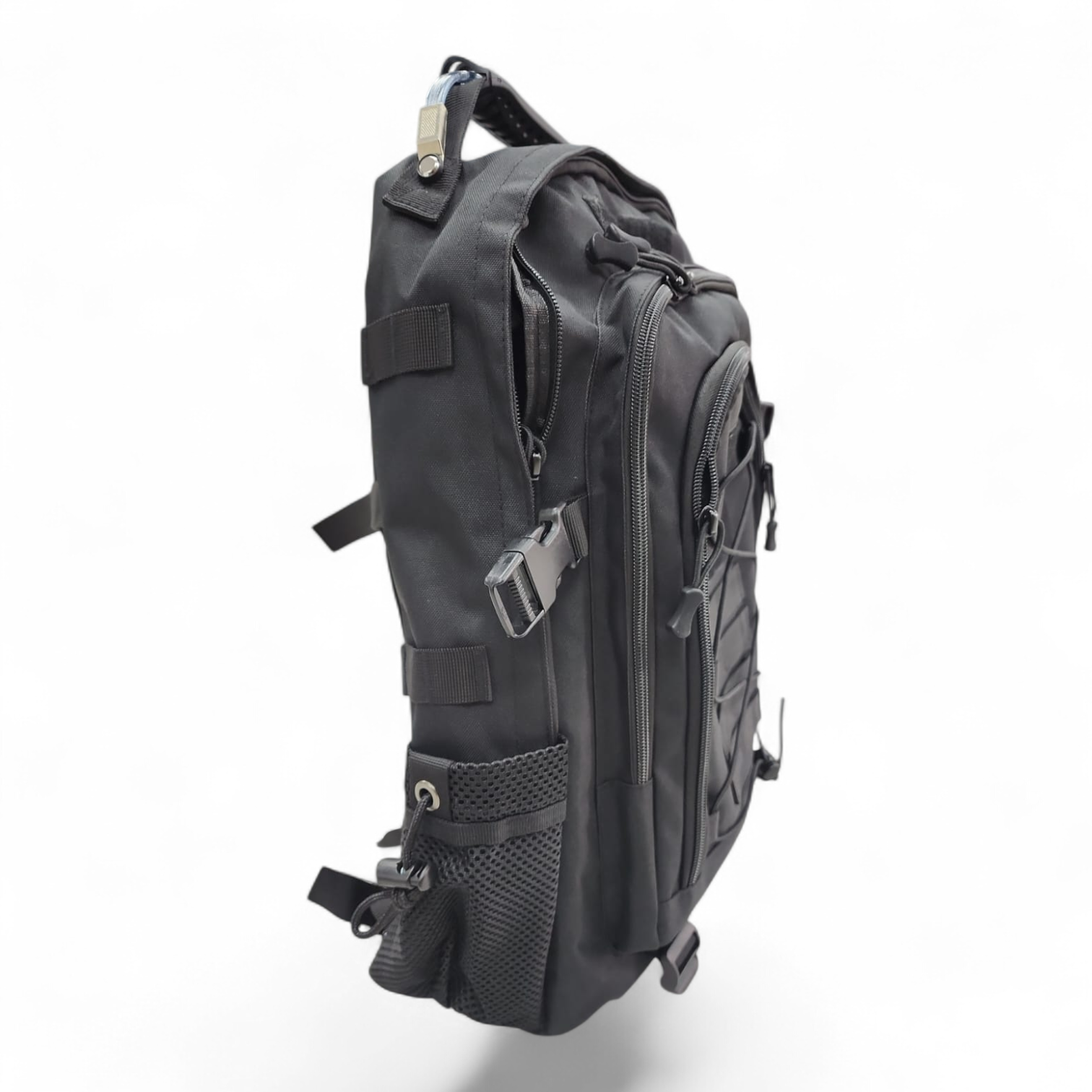 Multiple compartments and storage sections ensure efficient organization of gear, electronics, and accessories. Adjustable padded shoulder straps provide comfort during extended use, while the sleek black tactical design offers a modern and professional appearance.