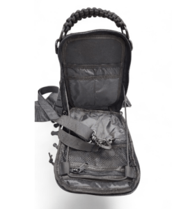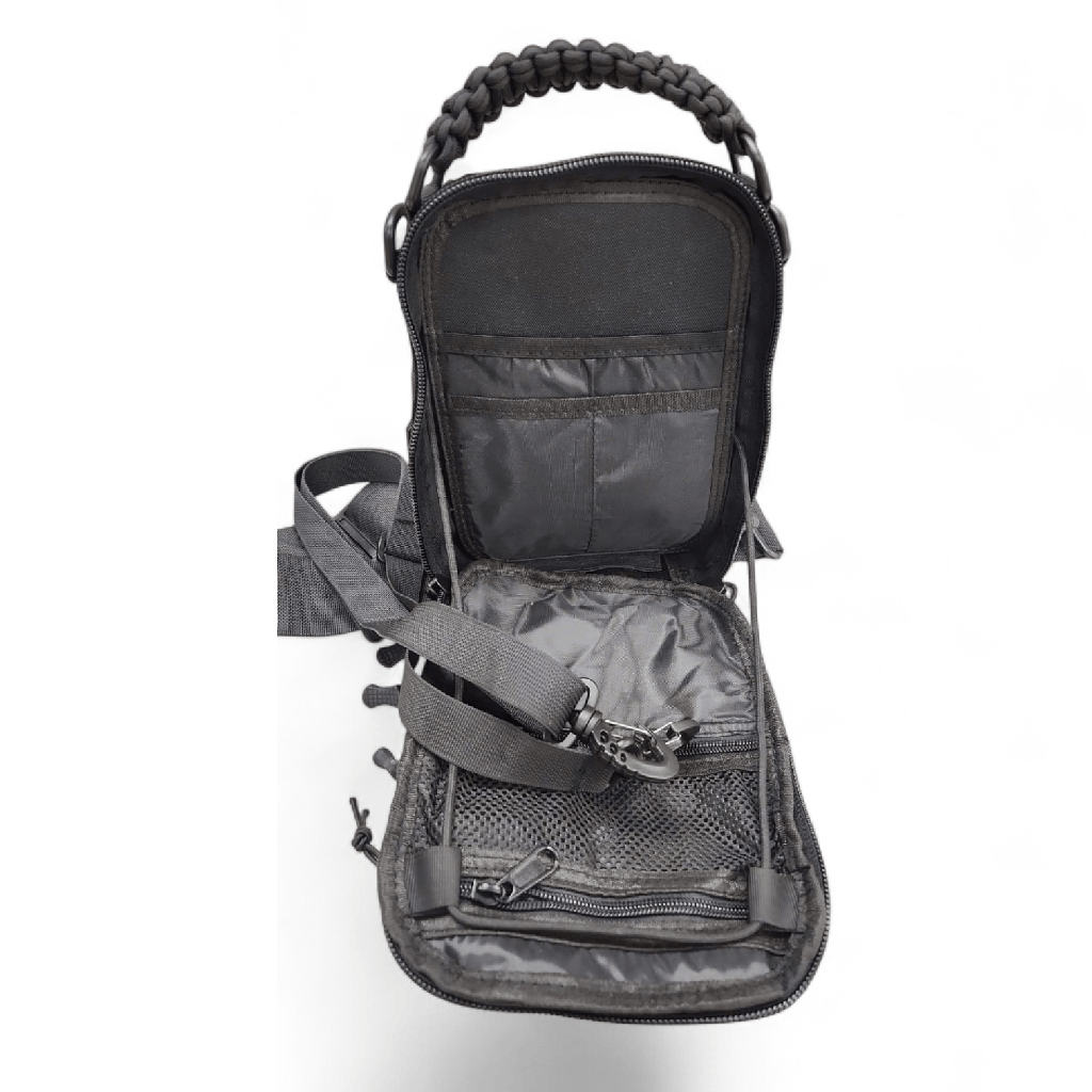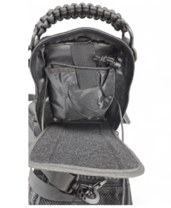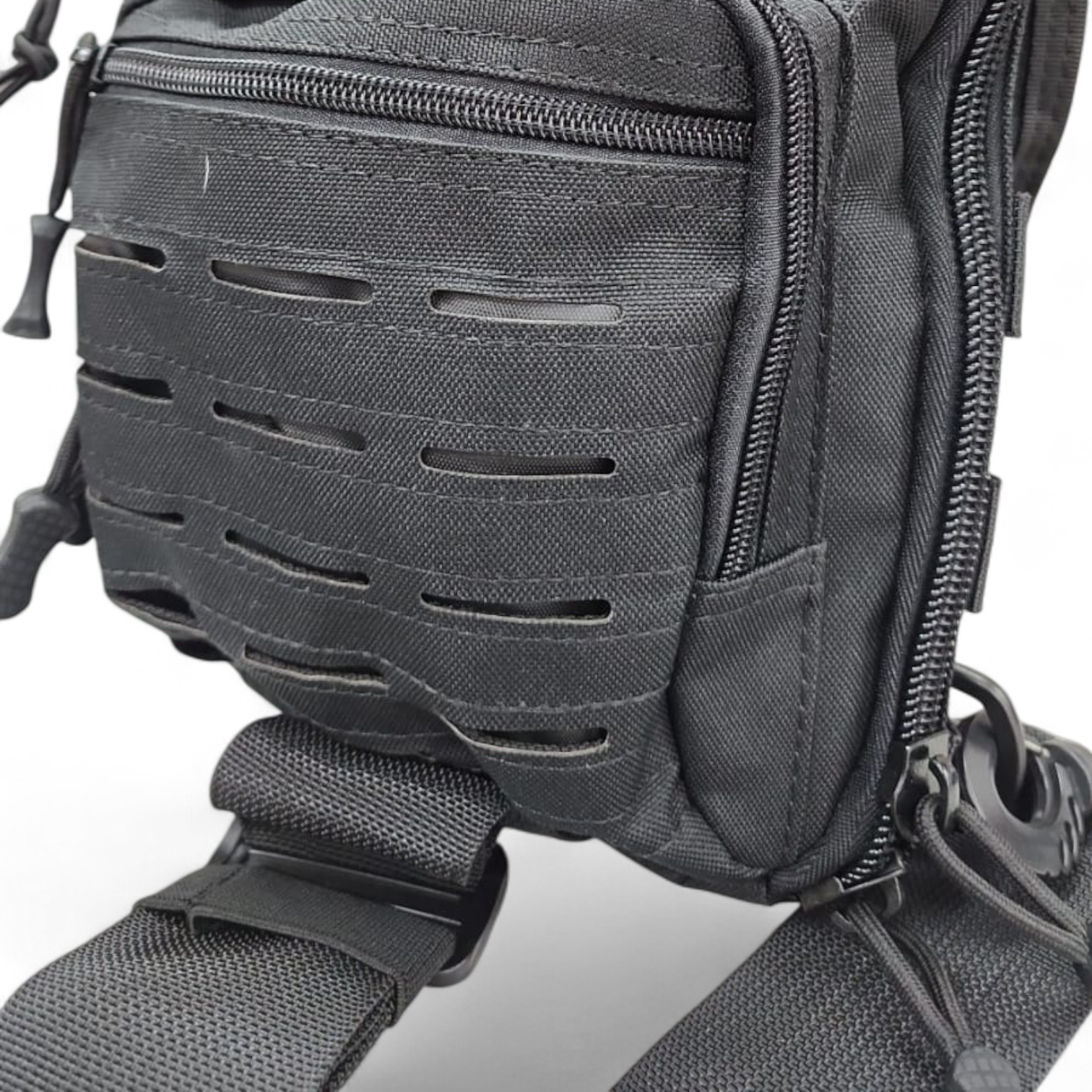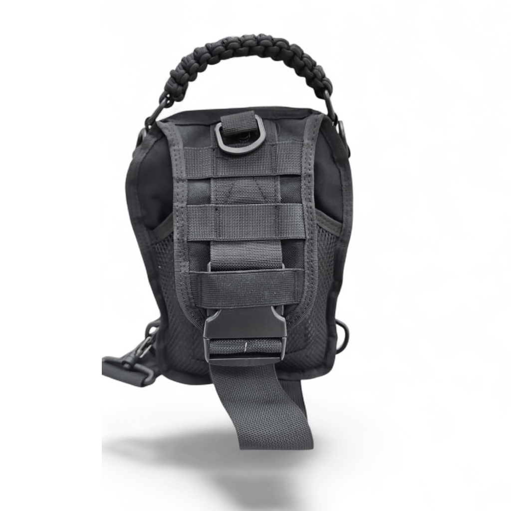 The adjustable shoulder strap enables comfortable crossbody carry, keeping your hands free while maintaining accessibility. The compact design makes it a great alternative to a full-sized backpack, while the black finish adds a distinctive tactical aesthetic suited for outdoor and field use.