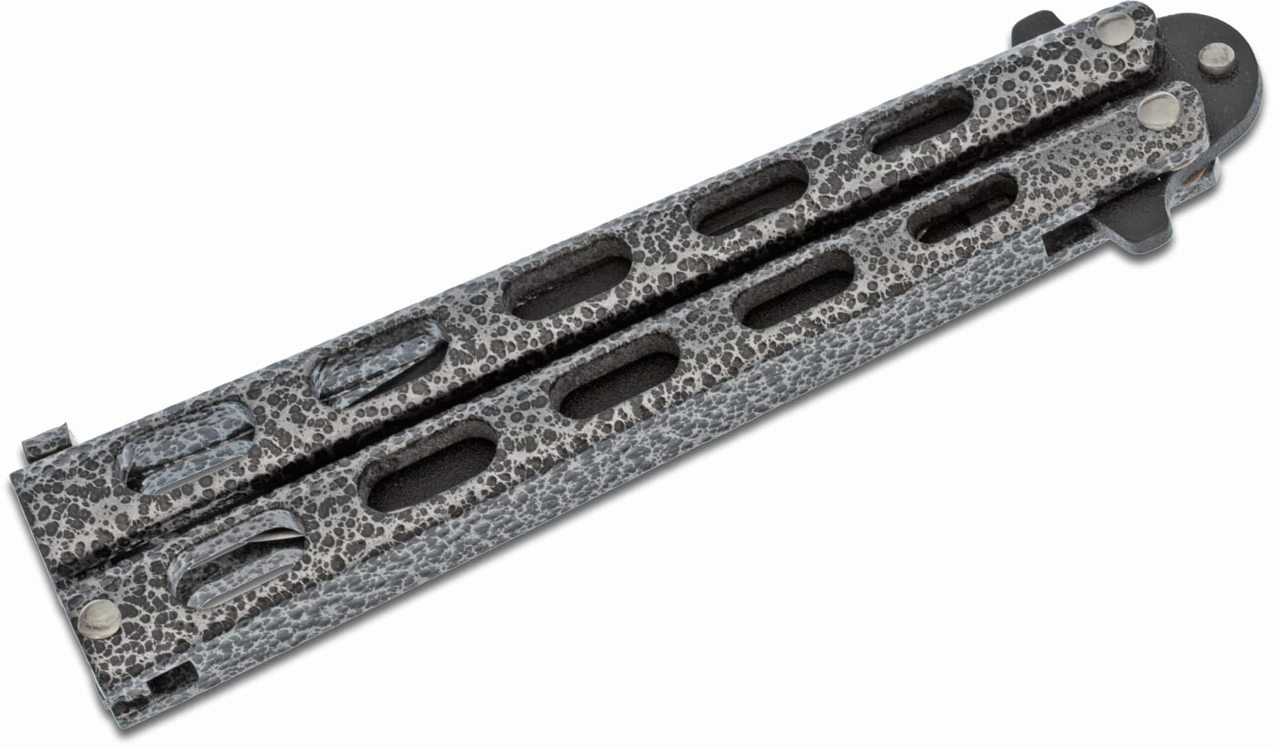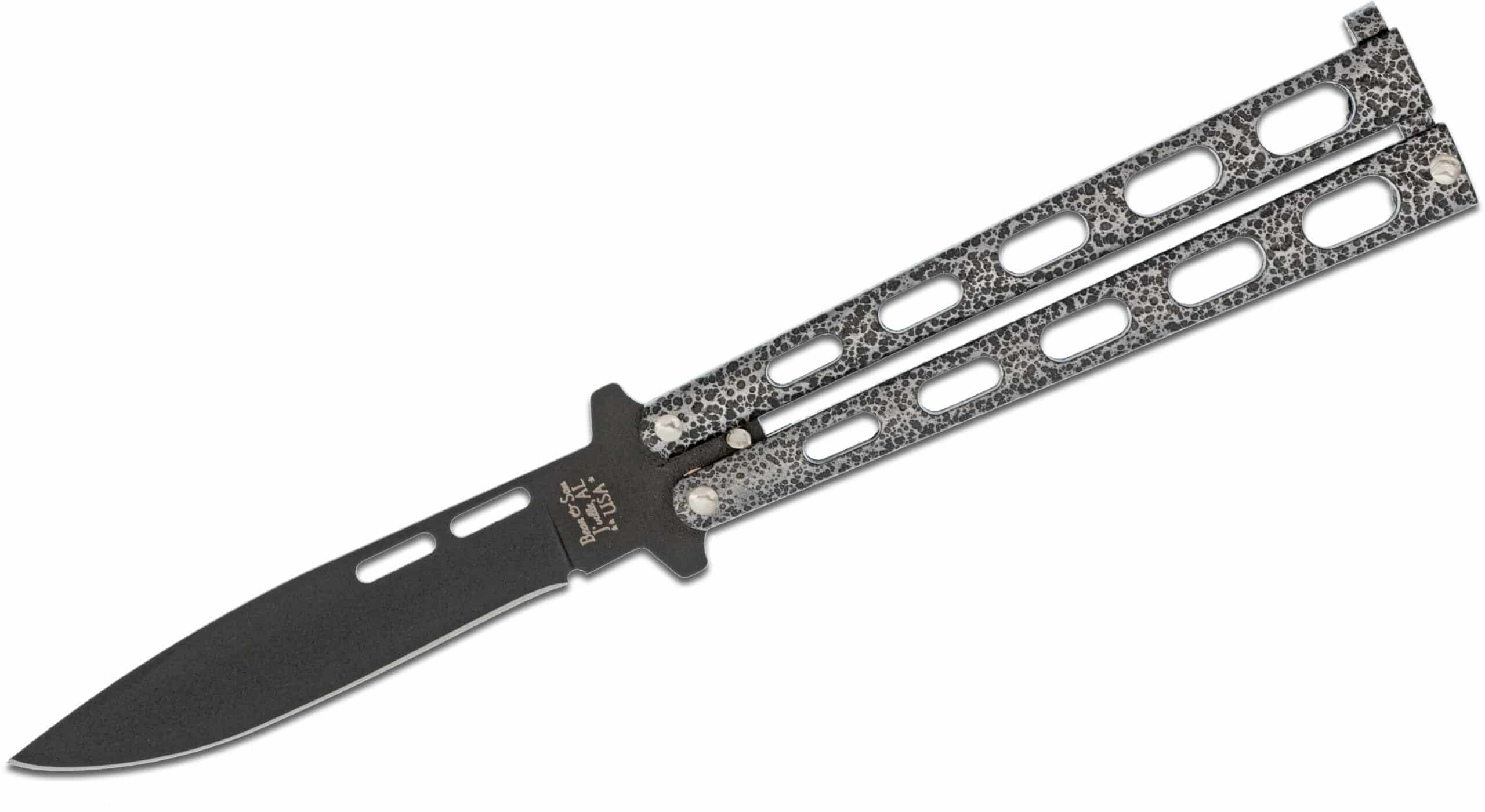 Bear & Son 115 Butterfly Knife Black Blade, Silver Vein Handles