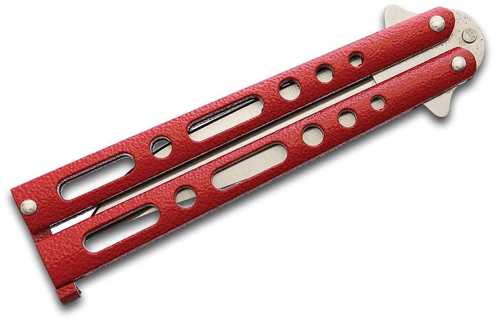 A well-priced entry model in the world of balisongs, this Benchmark BM009 Balisong Red Handles Butterfly Knife features a 4.13″ stainless steel blade and durable metal handles with an epoxy powder coat making it durable and light.