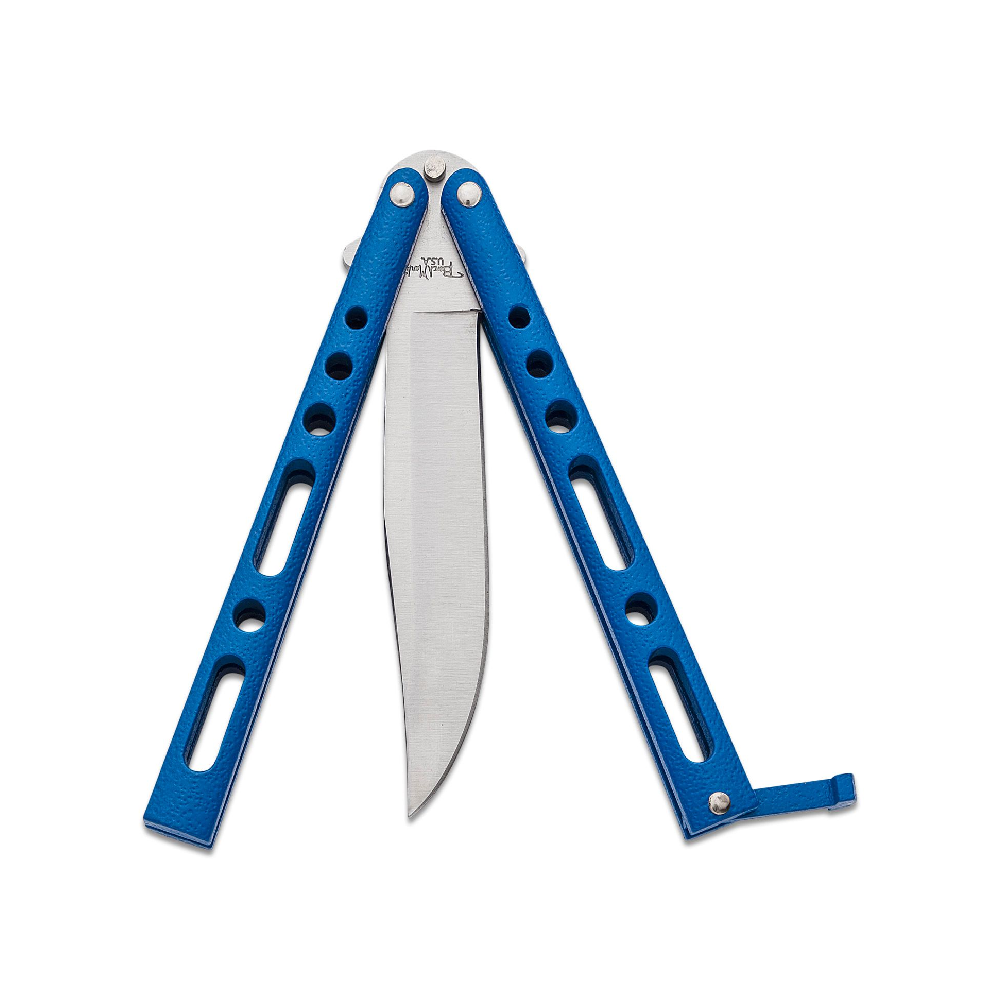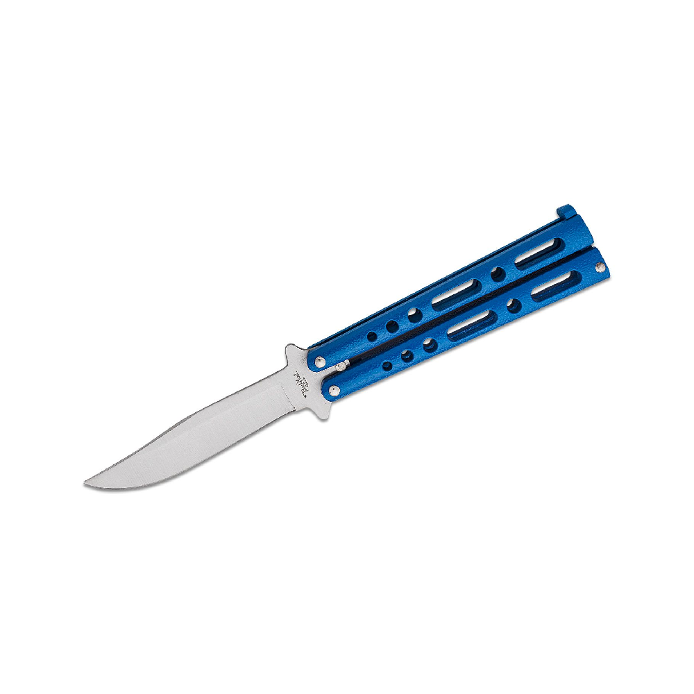 A well-priced entry model in the world of balisongs, this Benchmark BM011 Blue Handles Balisong Butterfly Knife features a 4.09″ stainless steel blade and durable metal handles with an epoxy powder coat making it durable and light.