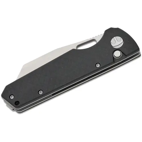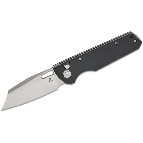 The Guardian is a tough and affordable folding knife that showcases Bestechman’s design chops. This pocket knife has a reliable D2 blade that swings open super easily on bearings thanks to the thumb slot. The Guardian is an extremely solid button-lock folding knife with a broad bite. The thick liners and carbon fiber of the handles provide an excellent, snug grip. The blade has a modified Wharncliffe design that gives it a broad belly and an aggressive piercing point. With an included deep carry pocket clip, this is yet another fantastic knife from the brilliant minds at Bestechman.