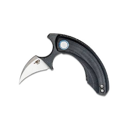 The Strelit from Bestech Knives and designer Ostap Hel is one of the most interesting and unique knives we’ve seen. It combines the convenience and ease of access of a flipper, with the combat and utility potential of a push dagger or karambit. The knife rockets open on the ball bearings in the pivot and stops at the halfway mark, ready for use. The circular groove on the front of the knife when closed provides an alternate means of opening the blade and can even be utilized to open the knife straight from the pocket, similar to the Emerson Wave feature. The 14C28N blade bears a hawkbill profile much like a karambit that aids in a variety of tasks whether they be opening boxes or defending your person. The handle rests comfortably in your palm when using the knife, giving you support and comfort no matter how you choose to use the blade. The knife comes complete with a pocket clip and is available in a variety of handle options.