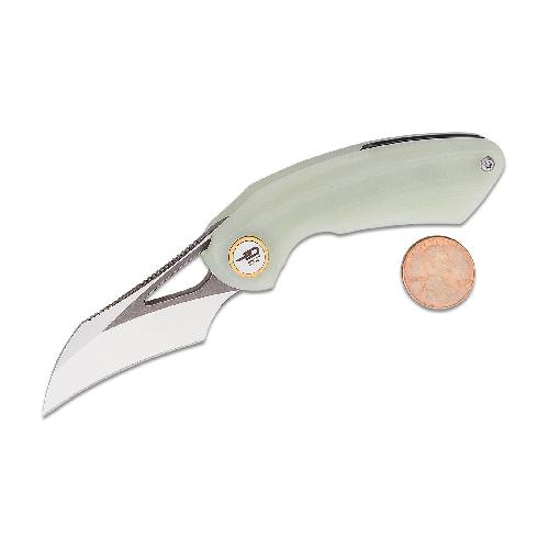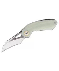 The Biahi front flipper designed by Ostap Hel is a knife unlike any other. From its eccentric appearance to the incredibly smooth action, the Bihai is a nice knife and will become someone’s absolute favorite – that we can guarantee. Add in the hawkbill blade which is extremely effective at opening boxes and mail and this knife is a near-perfect utility piece. The G10 handles are slightly grippy, allowing for a strong grip in most conditions. The finger choil allows the user to get a full four-finger grip on the handle, which is very impressive for a blade this size. The bearing pivot and sharp detent make for some buttery smooth, lightning-fast action and the milling around the locking area allows for easy manipulation of the lock. In a reverse grip, the Bihai could be pressed into last-ditch tactical use if you just punch at your assailant. The other 99.99% of the time, this knife is just a great EDC tool to have by your side.
