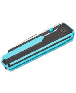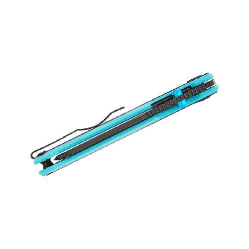 The dual-tone black and satin finish not only enhances corrosion resistance but adds a bold visual contrast that catches the eye. Complementing the blade, the vibrant teal and black G10 handle scales offer an ergonomic, slip-resistant grip—ideal for wet or sweaty conditions. A graceful spine groove flows from handle to blade, creating a continuous aesthetic line that’s as functional as it is striking.