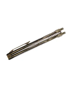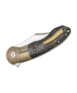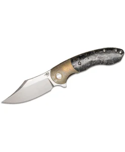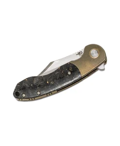 Ready for a night on the town, the BowieTie flipper knife from Bestech offers quality materials in a gorgeous package. The sweeping Bowie blade is made from excellent M390 stainless steel and has a satin/bead blasted two-tone finish that looks great. The blade deploys fast as lightning due to the ceramic ball bearings and locks up solidly with the integrated frame lock. The handles are made from shred carbon fiber with gold flecks and stonewashed titanium bolsters. Stylish and ergonomic, the handles lock firmly into your hand and give you plenty of leverage to get the job done. Complete with a titanium pocket clip, this knife will turn heads anywhere you want to carry it.