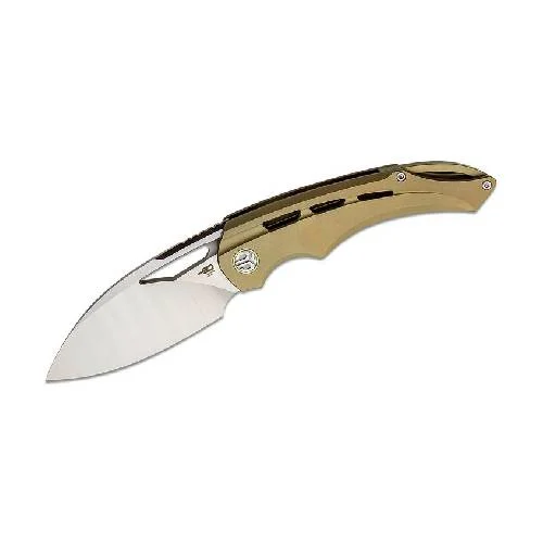 The BT2202D Fairchild is a large folding knife design from Bestech Knivess, perfectly suited for everyday carry and tough jobs alike. The 3.97″ drop point blade is made from CPM-S35VN stainless steel with a satin finish. The action riding on ceramic ball bearings is buttery smooth and the lockup is nice and tight. Unlike many of Bestech’s designs, this blade does not feature a thumb stud or flipper tab, but instead only has a blade hole, allowing the blade to easily be opened with either the thumb or a reverse middle finger flick. The handle is made from gold anodized, milled 6AL4V titanium and the shape locks it into your hand for comfortable extended cutting tasks. The blade choil allows for an excellent choked-up grip, providing maximum stability on this wicked sharp knife. The pocket clip and backspacer are made from 6AL4V titanium for maximum quality assurance and the design includes a nice sized lanyard slot.