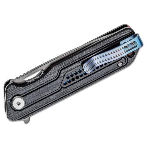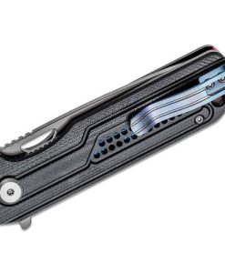 Sculpted for comfort and style, the handle is milled from contoured black G10 with a unique circuit-board pattern that marries eye-catching aesthetics with a secure, fatigue-reducing grip. Strategically placed cutouts lighten the load while offering glimpses of the titanium liner beneath, adding visual depth. A single-finger groove and textured jimping on both the flipper tab and thumb ramp lock your hand firmly into place, delivering maximum leverage and confidence during heavy-duty tasks.
