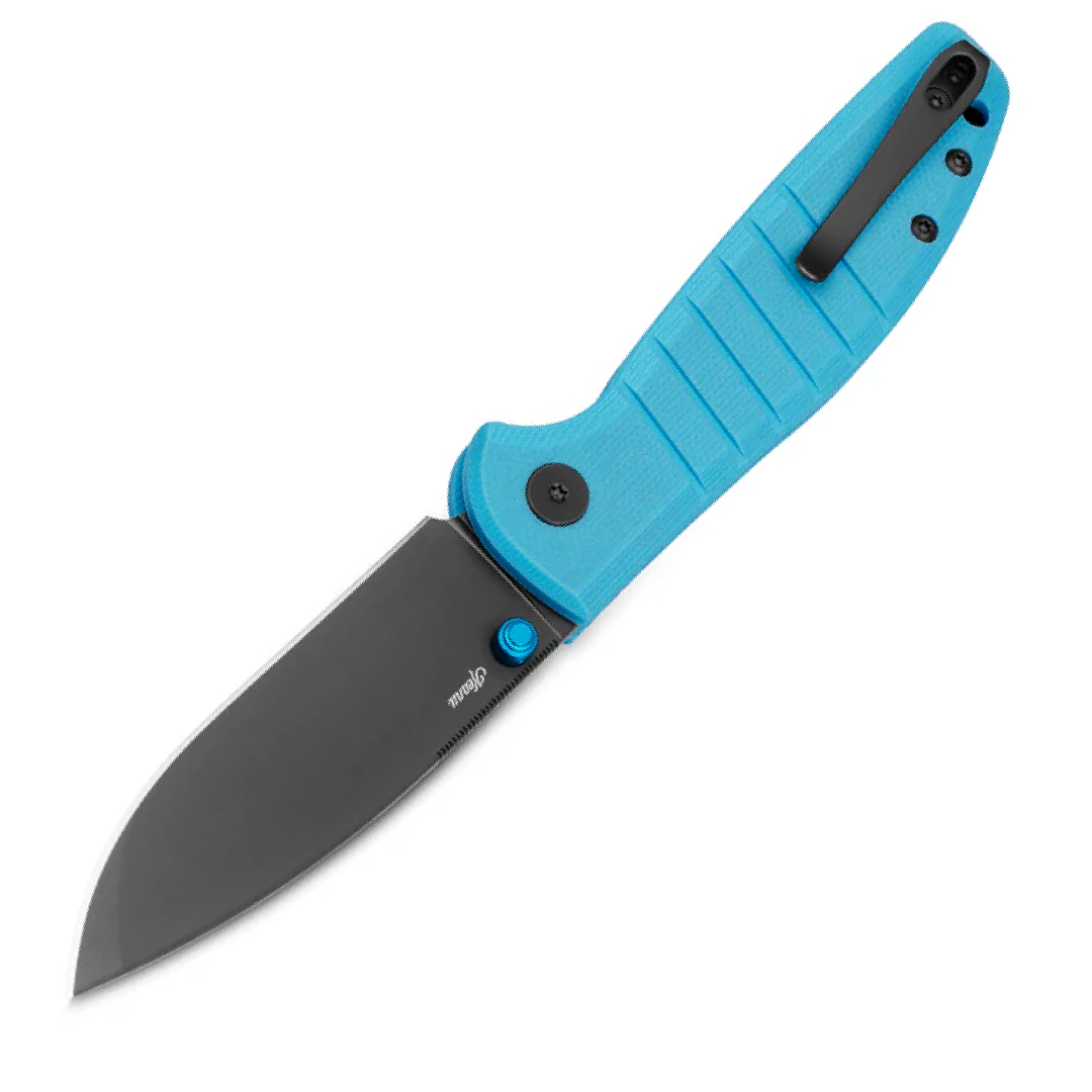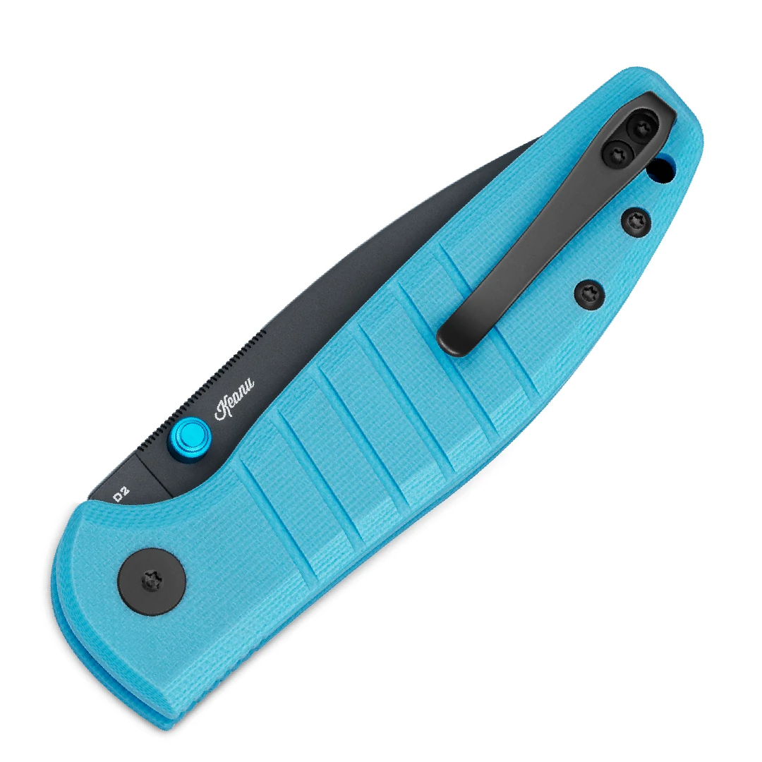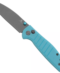 Goodboy Jr. Blue G10, Grey PVD compact version of the Goodboy model. A perfect combination of functionality and style, designed by American designer Keanu Alfaro. Made of good materials at an extremely attractive price, the folder features a D2 steel blade, a reversible clip and a gravity-openable blade, Button Lock. This exceptional knife will meet your requirements, whether you are outdoors or doing everyday tasks. Bestseller!