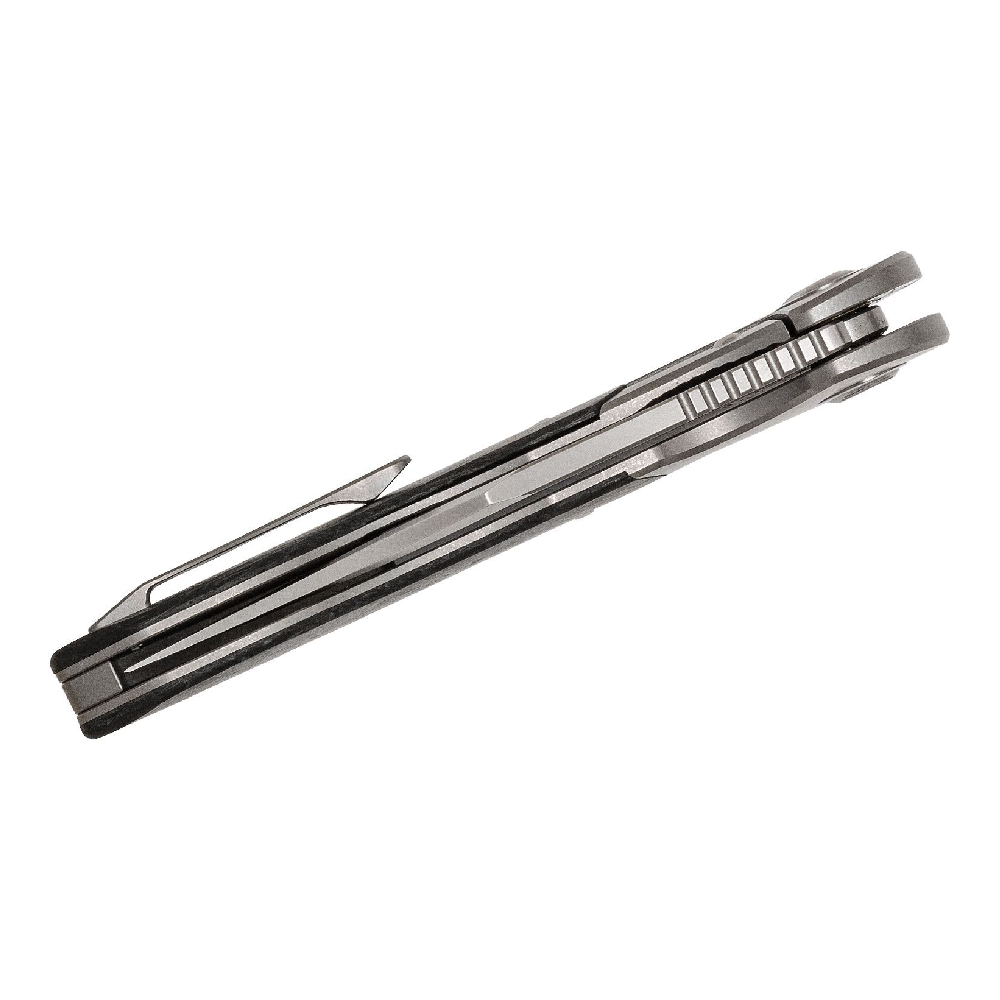 - Handle Material: Gray 6AL4V Titanium and Marbled Carbon Fiber