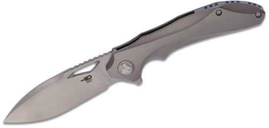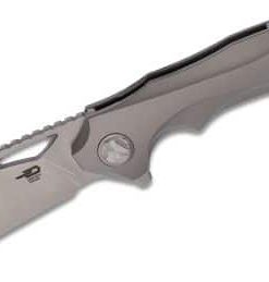 The BESTECH Knives Eskra Flipper Knife – BT1813C is a collaboration between BESTECH Knives and Polish knife designer Grzegorz Grabarski, also known as “Kombou.” This mid-size flipper boasts an aggressive profile and a surprisingly organic design aesthetic. The titanium handles are shaped to fit the hand like a glove and feature several angles and bevels, giving them a unique look. The large drop point blade is crafted from M390 stainless steel and has a convex shape in the middle, which lends a predatory appearance. The flipping action is smooth, thanks to the ball bearings in the pivot, and the knife locks up tightly on the frame. Additionally, it comes equipped with a titanium pocket clip, and due to the materials used, it is relatively lightweight.
