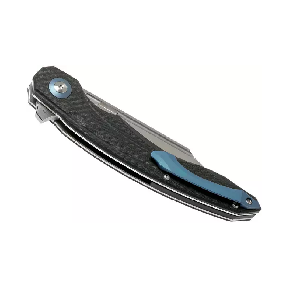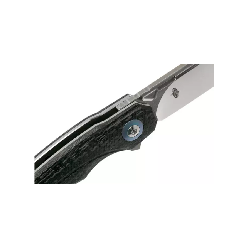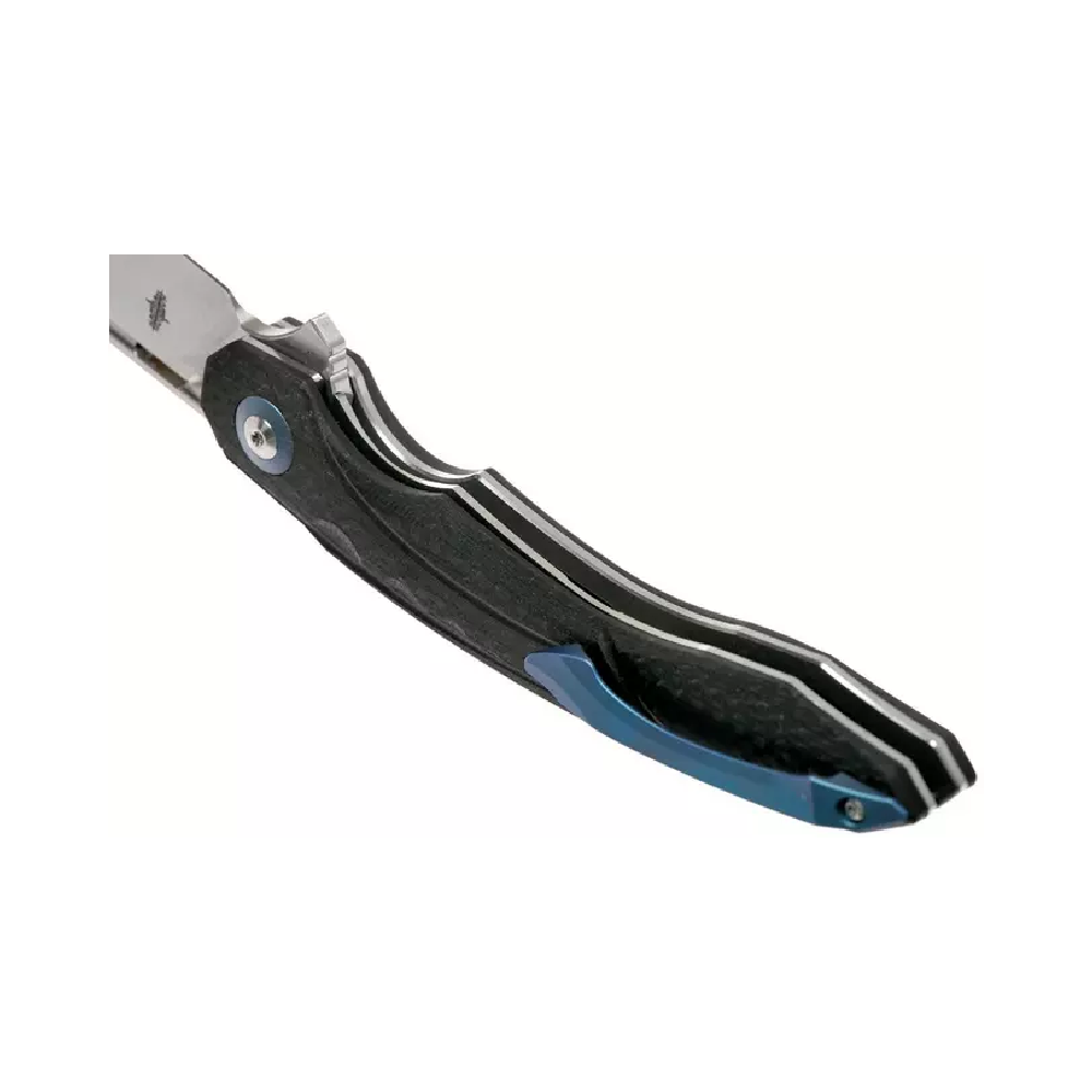 Every aspect of this knife speaks to ergonomic mastery. Dual scales of black G10 and carbon fiber envelop sturdy stainless liners, creating a handle that’s both feather-light and rock-solid. A deep finger groove locks your grip into place, while the angled thumb ramp gives you unrivaled control during precise cuts. No matter how demanding the job, the Fanga feels like a natural extension of your hand.