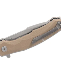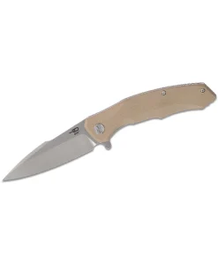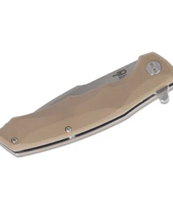 D2 is a high-quality tool steel known for its excellent wear and abrasion resistance. The textured tan G10 scales of the BG04C are comfortable to hold, while the flipper tab makes blade deployment a breeze.