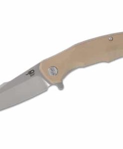 D2 is a high-quality tool steel known for its excellent wear and abrasion resistance. The textured tan G10 scales of the BG04C are comfortable to hold, while the flipper tab makes blade deployment a breeze.