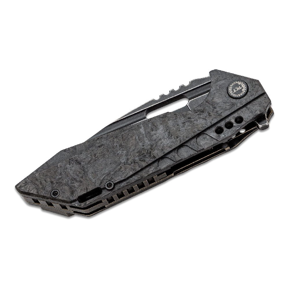 Encased in a handle that pairs aerospace-grade titanium with sleek carbon fiber, the Shodan is as light as it is strong. Every curve and chamfer is thoughtfully designed to nestle comfortably in your hand, reducing fatigue during extended use. When duty calls, the robust 6AL4V titanium clip locks the knife securely in your pocket or pack, ready to spring into action.