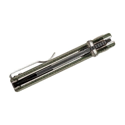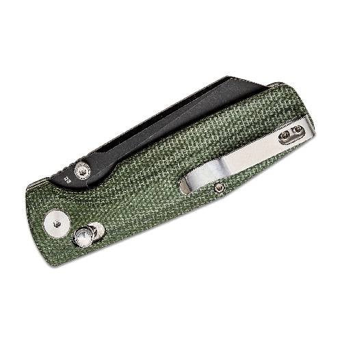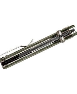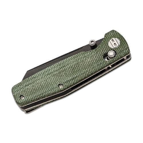 - Ergonomic green canvas micarta handle for a secure, non-slip grip
