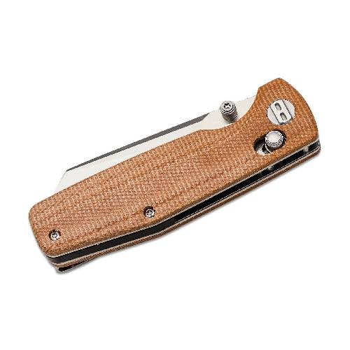 Comfort and control are built into every angle of the Slasher’s handle. Natural canvas micarta scales feature a subtly textured finish that feels firm under pressure and ages to a handsome patina. A pronounced finger groove and gently rounded bevels guide your hand into an ergonomic embrace, reducing fatigue during prolonged use. At just 3.5 ounces, the Slasher offers remarkable presence in the hand without weighing you down.