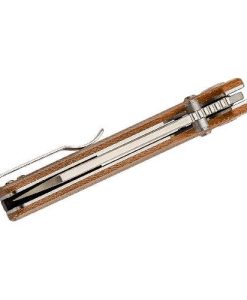 • Natural canvas micarta scales offer a firm, textured grip and develop a unique patina