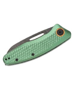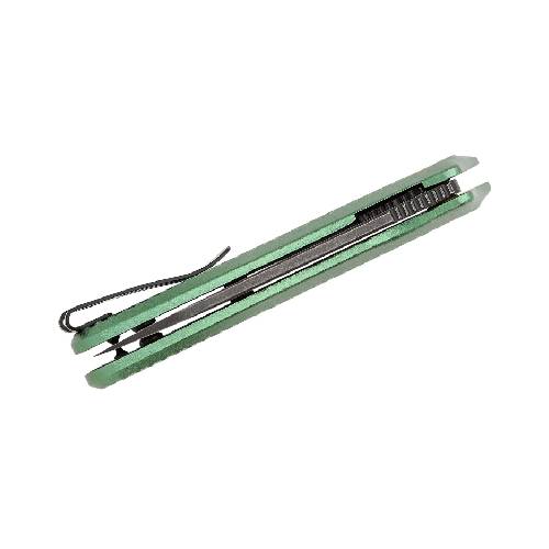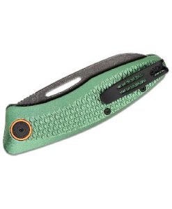 The Black FOX Feresa folding knife, designed by Grigorii Matveev and BlackFox, is built for everyday utility. Its D2 tool steel sheepsfoot blade features a black PTFE stonewashed finish, ensuring durability and corrosion resistance. The thumbhole allows for easy one-handed deployment, while the robust liner lock provides secure blade retention. Jimping on the spine enhances control during precise tasks. The green anodized aluminum handle features a textured grip for superior handling. A convertible tip-up stainless steel clip allows for versatile carry options.