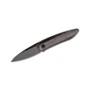 This knife is all about understatement. The blackened blade made of 440A steel is opened using a flipper and secured with a liner lock.