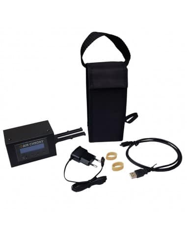 The Air Chrony MK1 is crafted with modern shooters in mind—easy to operate, highly accurate, resistant to interference, and packed with features to support your skill development. It’s a sophisticated yet user-friendly tool that’s perfect for enthusiasts of all levels. With this set, you not only get the top-of-the-line chronograph but also a package that includes a robust carrying case, rubber mounting bands, power supply, USB cable, and the software — everything needed to step up your shooting precision.