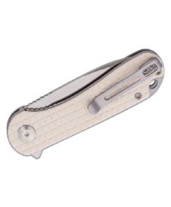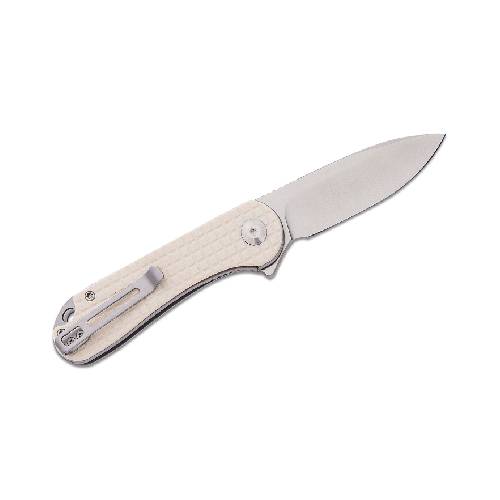 The C907 Elementum is a no-frills, straight-down-to-business utility folding knife. It’s a bit too compact to be used for self-defense but many of its design features pave the way for it to be an excellent EDC blade. These include the thin, ergonomic handle that provides no hot spots during use and a very simple utilitarian design with a slight twist. The Civivi-Elementum-Frag Patterned drop point blade transitions into an ergonomic handle that seems to melt into the hand. The ivory Frag G10 scales make for a great aesthetic while the deep carry clip keeps the knife securely attached to your pocket. The Elementum was designed for and is capable of all-day use and at this price point, we highly recommend you put it through its paces.