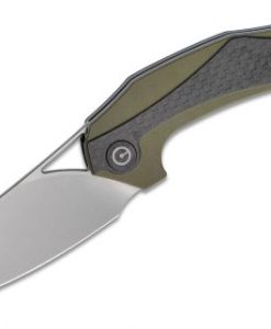 CIVIVI Knives C904B Elijah Isham Plethiros Flipper Knife Satin Blade, Green G10 Handles with Carbon Fiber Overlays