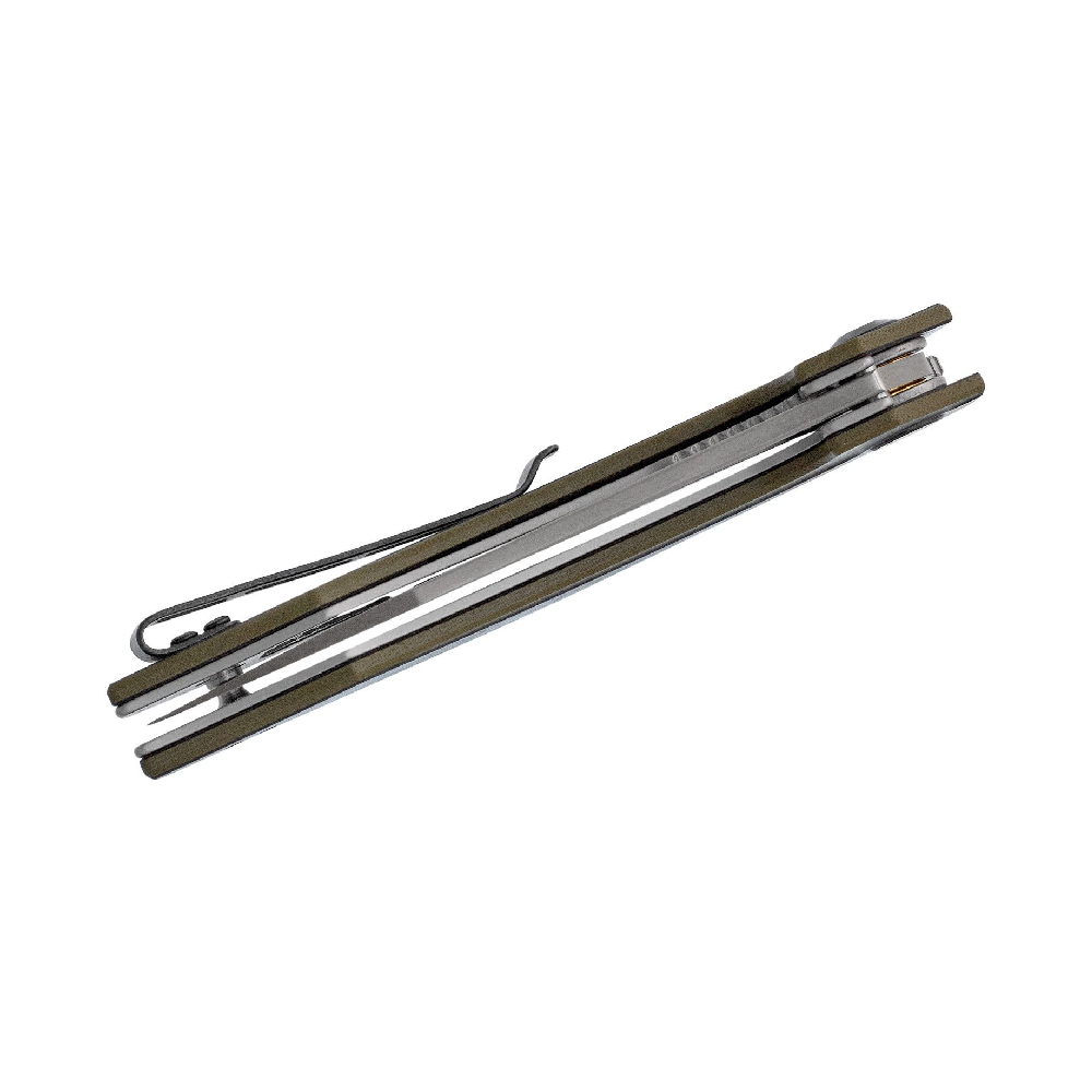 • Handle: Green G10 with Carbon Fiber Inlays, 0.51″ (13 mm) thick