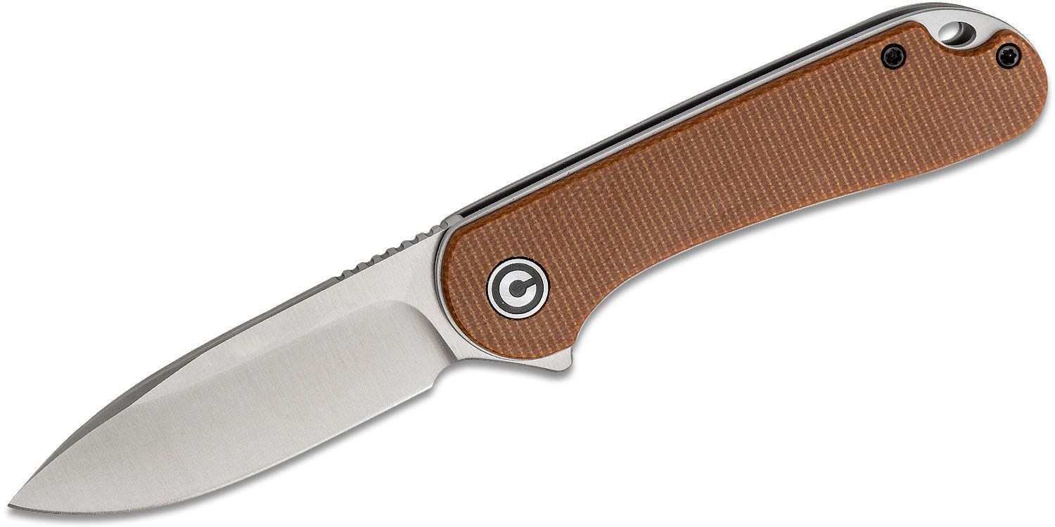 The CIVIVI Knives C907M Elementum is a no-frills, straight down to business utility folding knife. It’s a bit too compact to be used for self-defense but many of its design features pave the way for it to be an excellent EDC blade. These include the thin, ergonomic handle that provides no hots spots during use and a very simple utilitarian design. The C907M Elementum drop point blade transitions into an ergonomic handle that seems to melt into the hand. The C907M Elementum brown Micarta scales make for a great aesthetic while the deep carry clip keeps the knife securely attached to your pocket. The Elementum was designed for and is capable of all-day use and at this price point, we highly recommend you put it through its paces.