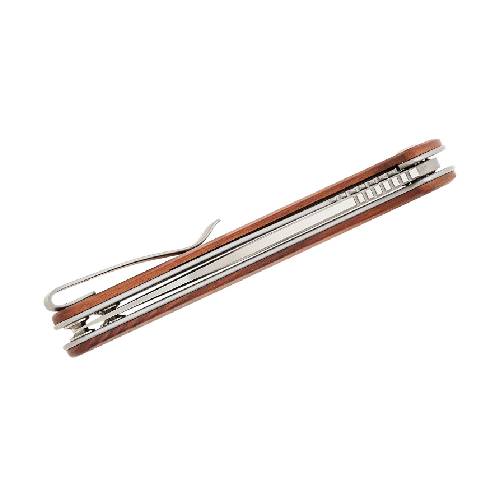 Experience versatility and lightweight performance with the CIVIVI Knives Primitrox liner lock flipper. The Civivi Primitrox is crafted with Guibourtia Wood handles providing a secure grip, this knife boasts a flat grind 3.48″ Nitro-V satin drop point blade for precise slicing. The satin finish adds refinement to its durability. With a closed length of 4.41″ and extended to 7.89″, it strikes the perfect balance between functionality and portability.