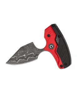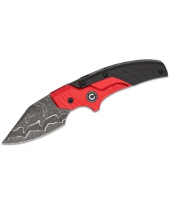 Unfolding the Typhoeus reveals a 2.27″ Damascus clip-point blade, painstakingly acid-etched to showcase swirling, high-contrast patterns. It locks into a full-size fixed-blade stance, ready for daily tasks from slicing open packages to precision field work. When duty calls for serious defense, a quick twist of the handle transforms it into a 3.00″ push dagger. Your hand slips seamlessly into the red-and-black aluminum grips, locking the blade into a fighting-knife configuration that feels like an extension of your own fist.