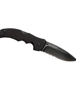 Cold Steel is famous for raising the bar in the knife industry and COLD STEEL CLIP POINT SERRATEDtactical folders are setting a standard that’s hard to beat. Why? Because they are as tough as nails and will cut like a chain saw! Every facet of their construction has been over engineered to make them as strong, durable and effective as humanly possible. The blades are made out of imported Japanese AUS 8A stainless steel that’s been vacuum heat treated and sub-zero quenched and the handles feature G-10 laminate scales artfully contoured and scalloped for a terrific non slip grip. Plus, they are held together by the latest in high strength mechanical fasteners and further anchored by a 6061 heat-treated spacer. To compliment their super tough blades and handles they are equipped with our revolutionary Tri Ad lock (see page 4), which practically precludes lock failure.