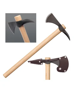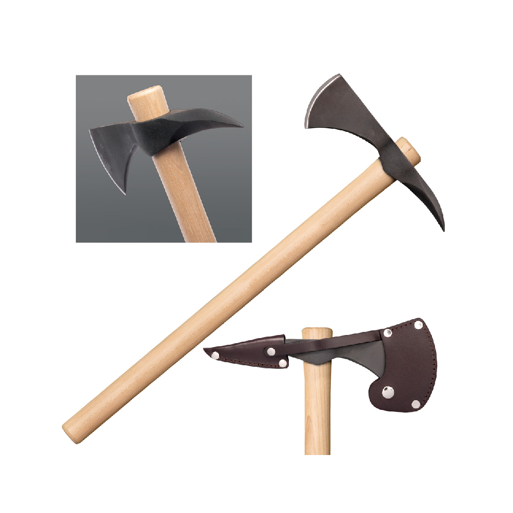 The Spike Hawk has one highly effective edge and a long spike which makes it a forceful weapon, ideal for chopping, cutting, slashing and gouging. Either end of the Hawk can be used to hook or trap an opponent’s weapon, neck, arm or leg, to control or manipulate the situation to one’s advantage. It is also capable of performing utility chores. Featuring an 8.12 cm drop-forged 1055 carbon steel blade with a plain cutting edge and a durable American Hickory handle, it delivers exceptional strength, balance, and impact performance for heavy-duty tasks and throwing applications.