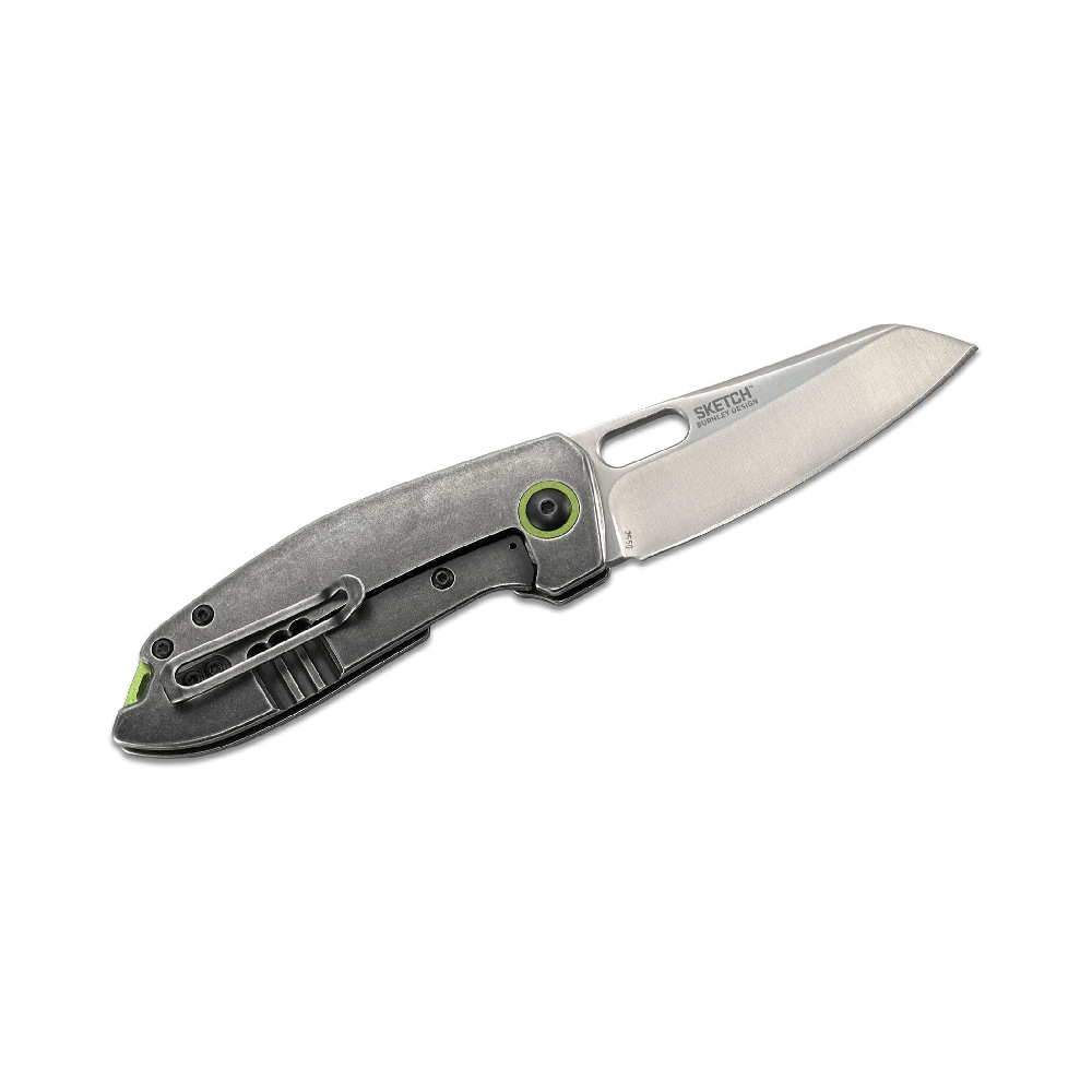 Lucas Burnley is back with an updated, refreshed utilitarian and compact CRKT-2550 Sketch. Surprisingly powerful EDC classic, featuring an over-sized thumb slot for easy deployment. Customized with eye catching anodized light green backspacer and also pivot ring. Sturdy, low-profile, tip-up pocket clip for secure right hand carry.