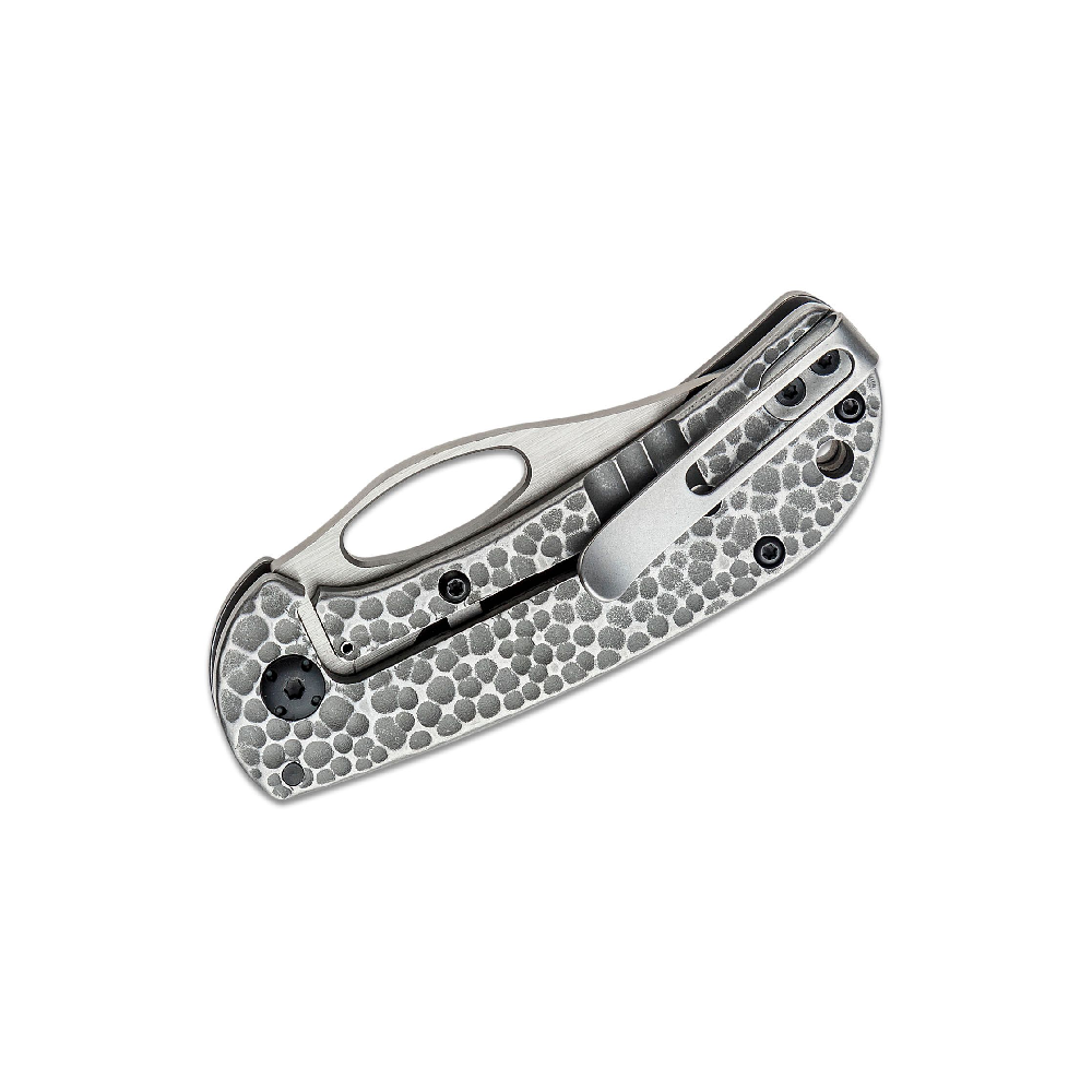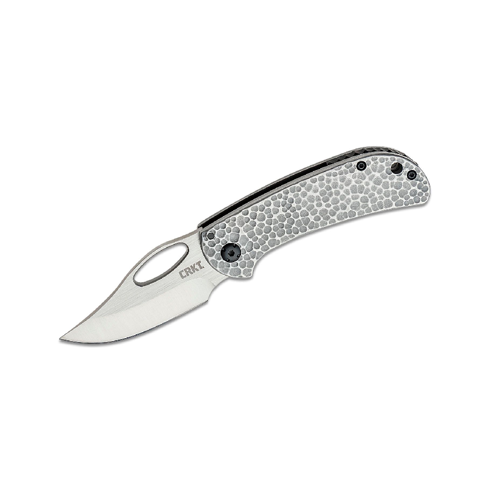 CRKT-6540 Chehalem folding knife is a versatile, rugged small EDC with an unusual aesthetic, a hammer textured stainless steel handle for a secure grip and a fine, strong, sharp blade tip for detailed cutting. Easy access with an enlarged thumb hole and a sturdy frame lock hold it securely in place. Discreet deep carry pocket clip with a satin stainless steel finish, worn tip-up, right hand only.