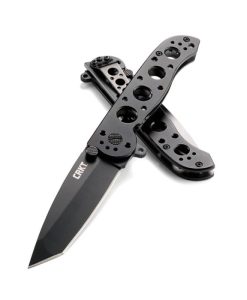 The CRKT M16-02KS Tanto Black Folding Knife, crafted with a 12C27 Sandvik steel blade and black oxide finish. Features a tanto blade, durable stainless steel handle, flipper/thumb stud opening, frame lock, and pocket clip—ideal for tactical and everyday carry.