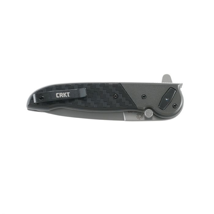 EDC tactical folder series based on a legacy design of the late Kit Carson, marrying classic lightweight design with contemporary innovation. Effortlessly deployed with a spine flipper or dual thumb studs, quick and smooth action due to the IKBS ball bearing pivot system. Locks into place with the ‘Innovative Deadbolt’ locking mechanism, easy and simple to use, providing incredible strength. A protruding button by the pivot point disengages the blade. CRKT-M40-03 Spear point deadbolt folding knife also features a discreet deep carry, removable, right or left hand carry, tip-up, black coated stainless steel pocket clip.