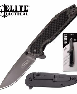 The Elite Tactical ET-1007 Folding Knife is a durable and reliable cutting tool, designed for tactical and everyday use. Featuring a 3.5-inch drop point blade made from 8CR13 stainless steel with a TiNite coating, this knife delivers excellent edge retention and corrosion resistance. The stainless steel and carbon fiber handle provides a lightweight yet strong grip, while the frame lock mechanism ensures safety during use. With its dual thumb studs, the knife allows for smooth and quick deployment.