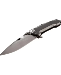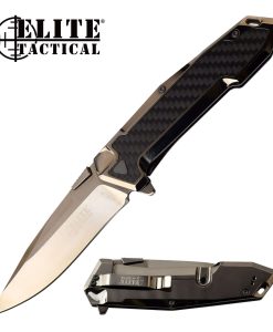 The Elite Tactical ET-1018GM Folding Knife combines precision craftsmanship with durable materials for a reliable everyday carry option. Featuring a 3.6-inch drop point fine edge blade, this knife is constructed from 8Cr13 stainless steel with a mirror-polished TiNite coating, ensuring exceptional sharpness and corrosion resistance. The stainless steel and carbon fiber handle provides a comfortable yet sturdy grip, while the frame lock mechanism offers secure blade retention. Equipped with a top thumb stud and a reversible pocket clip, this folding knife is designed for quick deployment and versatile carry options.