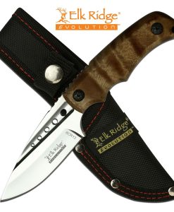 The ELK RIDGE ERE-FIX022-BW Evolution Fixed Blade Knife is a compact and durable fixed blade knife, designed for precision cutting and outdoor use. Featuring a 2.75-inch drop point fine edge blade, this knife ensures sharpness and control, making it ideal for hunting, camping, and everyday carry. The 8CR13 mirror-polished blade offers excellent corrosion resistance, while the maple burl wood handle provides a comfortable and ergonomic grip. With a full-tang construction, this knife delivers enhanced strength and durability. It also includes a nylon sheath for safe storage and easy carry.